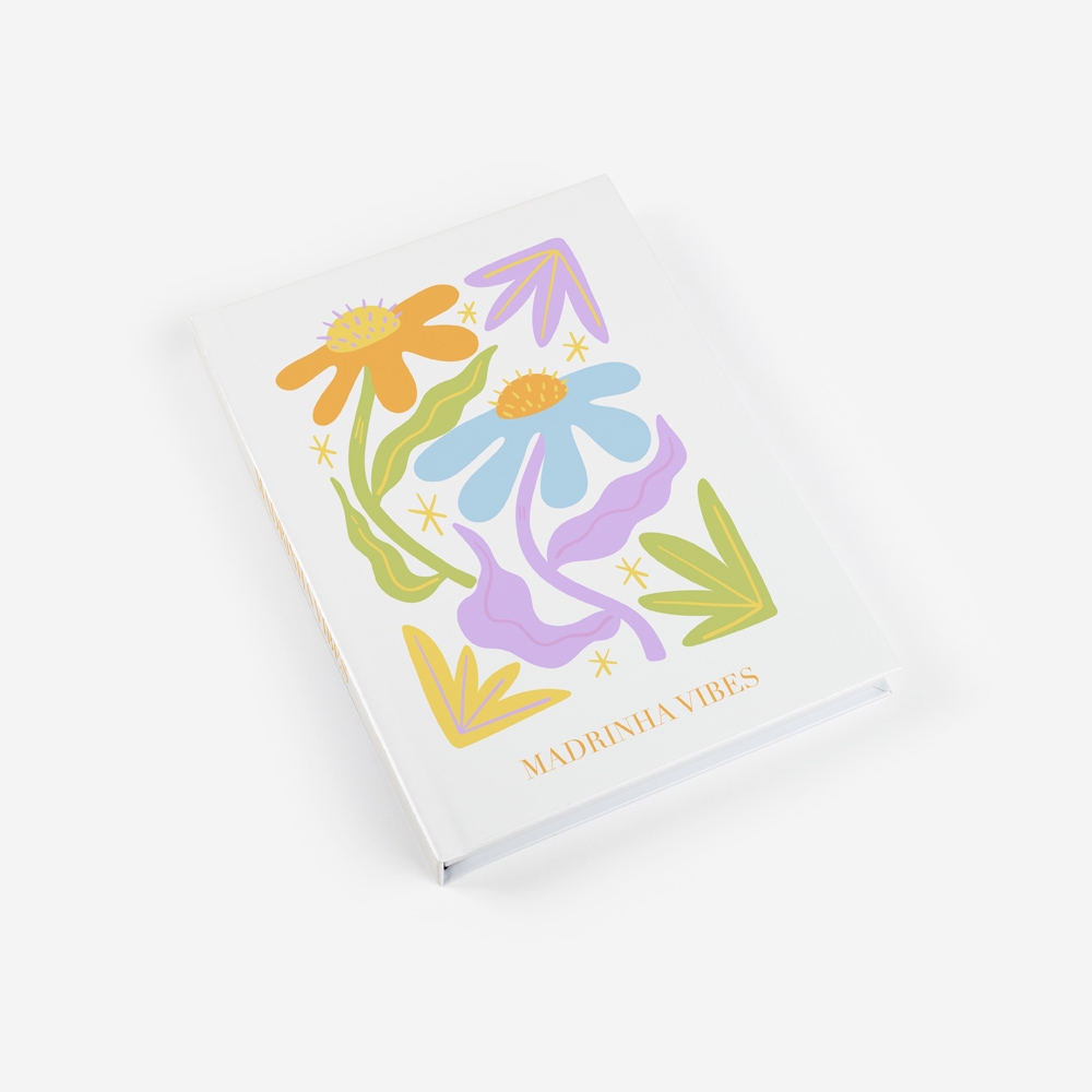 Para a madrinha que traz cor a todos os dias, criámos o tema Madrinha Vibes. Com ilustrações botânicas de traço livre e uma paleta solar, este álbum destaca-se pela sua personalidade vibrante e artística.