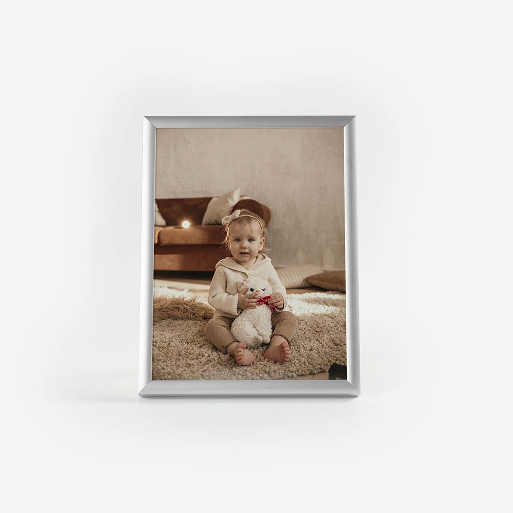 Moldura de alta qualidade, composta por uma estrutura em Alumínio com proteção em vidro, garantindo durabilidade e um acabamento perfeito para destacar as tuas fotos.