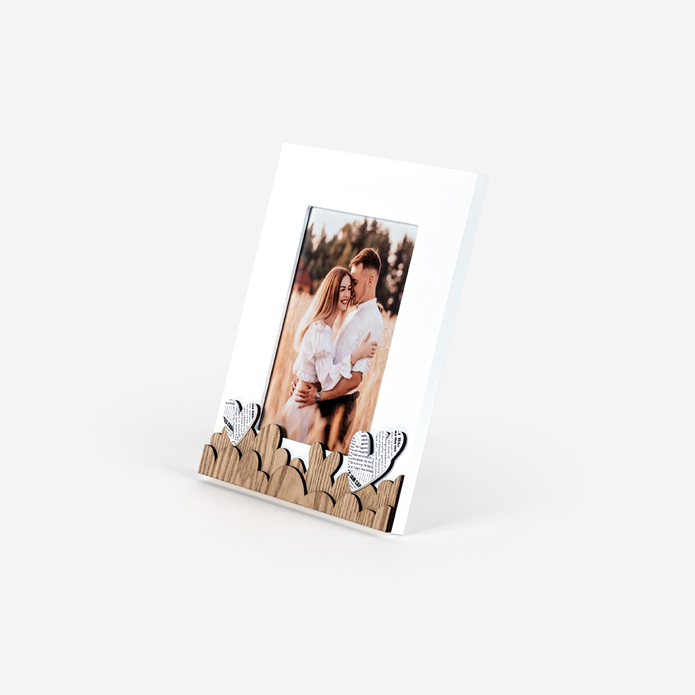 Moldura de alta qualidade, composta por uma estrutura em MDF com proteção em vidro, garantindo durabilidade e um acabamento perfeito para destacar as tuas fotos.
