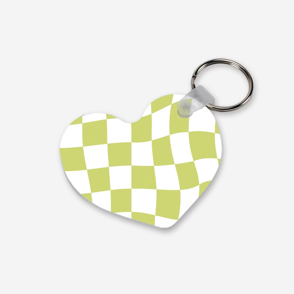 Um porta-chaves em forma de coração que troca o básico por um padrão checkered distorcido em verde lima. É o pequeno detalhe que faltava para levares a tua foto favorita sempre contigo, com um estilo retro e super descontraído.
